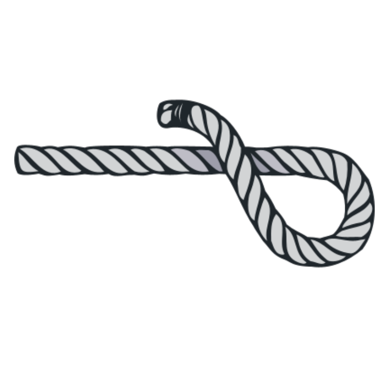 Im ersten Schritt nimmst du dein Seilende und legst ein Auge, wobei das lose Ende über dem langen Ende liegt.