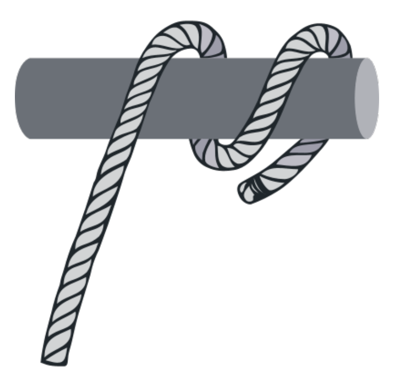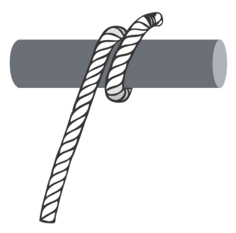 Der Rundtörn mit zwei halben Schlägen wird ähnlich wie der Webeleinstek verwendet, um eine Leine an einem Gegenstand zu befestigen. Er lässt sich auch in der Mitte der Leine und unter Spannung knüpfen und ist perfekt geeignet, um beispielsweise Dein Boot kurz am Steg festzumachen. Im Grunde besteht er aus einem Rundtörn um einen Gegenstand (wie ein Ring, ein Poller, eine Öse oder eine Stange) und einem Webeleinstek (zwei halbe Schläge) um das feste Ende des Seils.