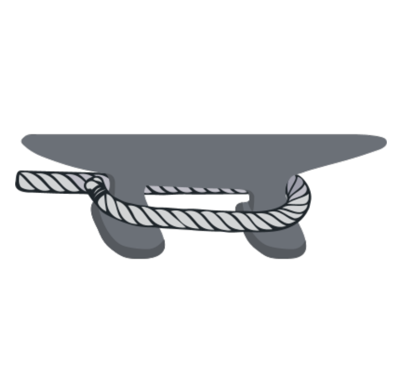 Meist sind Boote bereits mit mehreren fest montierten Klampen ausgestattet und auch am Steg befinden sich feste Klampen. Gibt es statt einer Klampe nur Poller, nutzt Du stattdessen einen Webeleinstek oder einen Palstek.