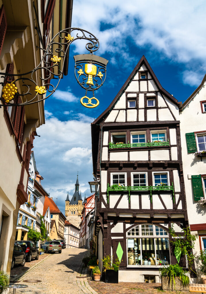 In Lauffen am Neckar angekommen erwartet Dich ein hübscher Altstadtkern, bunte Fachwerkhäuser und der Klosterhof!