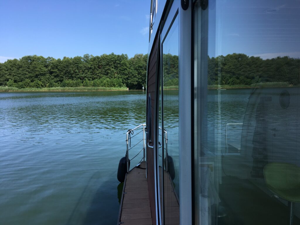 Im Revier der Mecklenburgischen Seenplatte gibt es jedoch einige Ausnahme-Gewässer, auf denen Du ein Hausboot auch ohne Führerschein fahren darfst – dazu brauchst Du dann eine Charterbescheinigung.