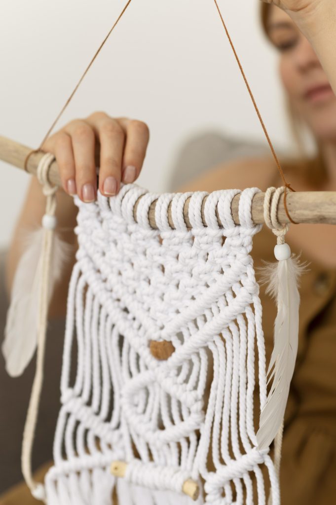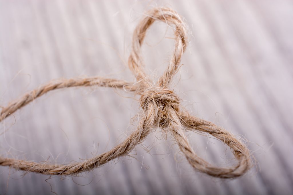 Der Kreuzknoten ist ein besonders flacher Knoten und eignet sich sowohl zum Weben als auch zum Knüpfen von Makramee-Mustern.