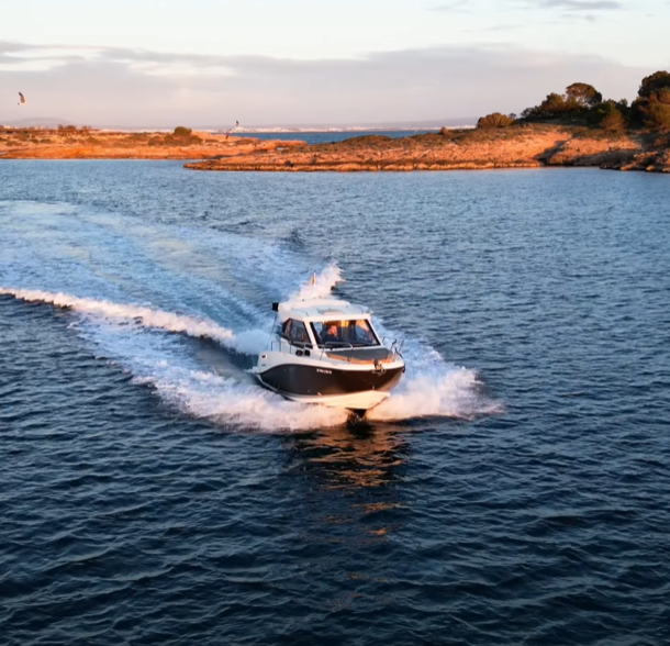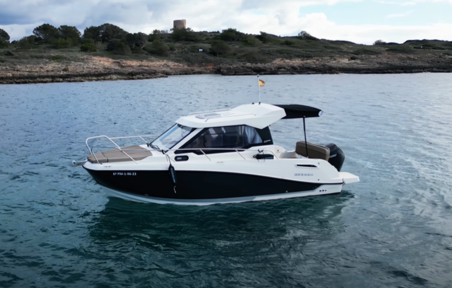 Die Quicksilver 675 ist ein kompaktes Boot, das extrem viel Komfort bietet. Mit nur knapp 7 Meter Länge ist es gut trailerbar und perfekt, um selbst in vollen Marinas noch gute Liegeplätze zu finden. Der bis zu 225 PS starken Außenborder ist nicht der schnellste – aber schnell genug für jede Menge Spaß auf dem Wasser. Durch einen Tiefgang von nur 0,48 Meter lässt es sich auch in seichtem Gewässer problemlos manövrieren.