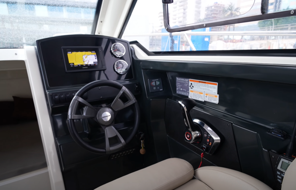 Das Cockpit der Quicksilver 675 ist rundherum geschützt, sodass auch ein paar Regentropfen oder raue See kein Problem darstellen. Der Steuerstand ist sehr übersichtlich und benutzerfreundlich. Auch Anfänger finden sich hier schnell zurecht.