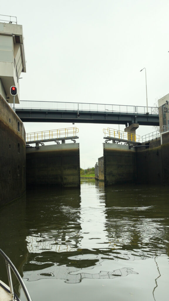 Vor der Einfahrt in die Schleuse musst Du warten, bis die Lichtsignale auf Grün sind. Dazu gibt es in der Regel einen gekennzeichneten Wartebereich, wo Du Dein Boot festmachen kannst.