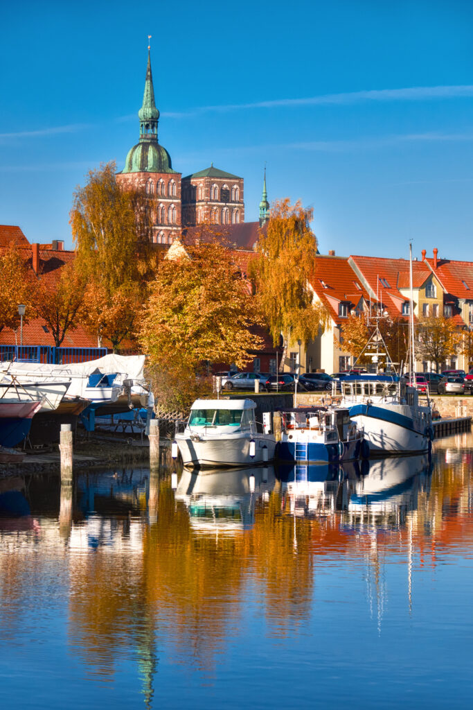 Der erste Kandidat ist die bekannte Ostseestadt Stralsund mit ihrem wunderschönen Hafen. Der Hafen von Stralsund gilt als der schönste Hafen der deutschen Ostseeküste und die Stadt trägt auch den Beinamen “Perle des Ostens”. Neben maritimem Flair kann die Stadt mit einer wunderschönen, historischen Altstadt punkten, die mit einer Vielzahl an einzigartigen Bauwerken und Denkmälern versehen ist. Besonders sehenswert bei einem Besuch von Stralsund sind das Deutsche Meeresmuseum, die alte “Gorch Fock” oder das Ozeaneum.