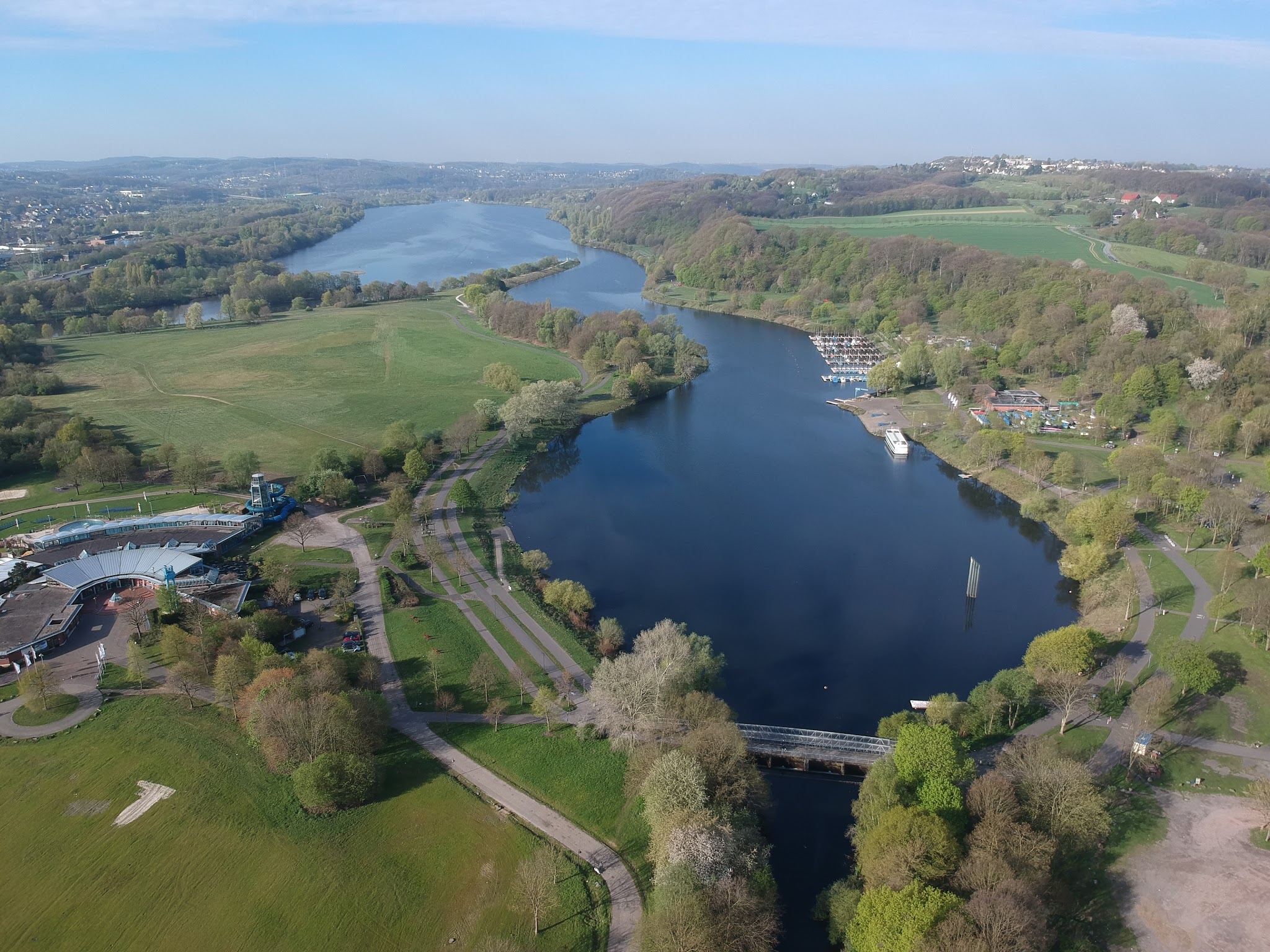 Die Ruhr fließt südlich von Bochum durch Essen, Hattingen, Witten und zahlreiche weitere Städte. Unterbrochen wird sie durch einige große Seen, wie den Baldeneysee bei Essen oder den Kemnader See.
